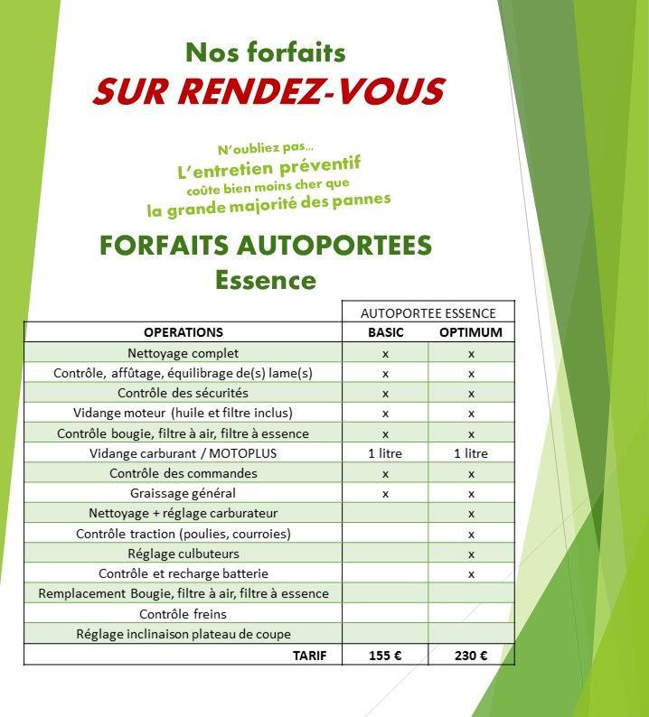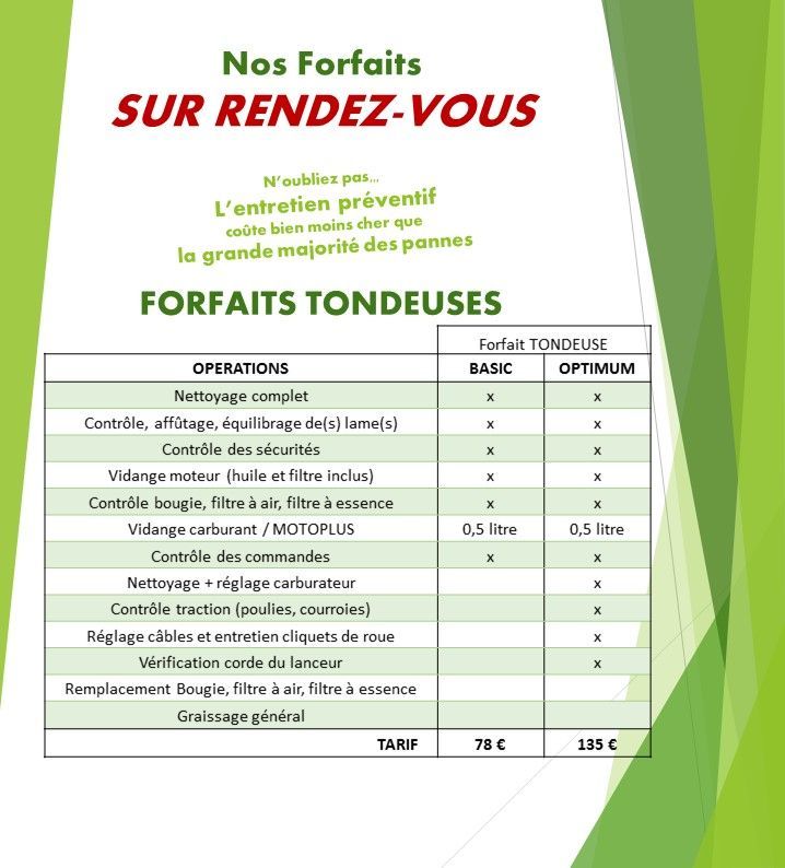 Toute l'année profitez de nos forfaits d'entretien sur tout votre matériel de motoculture.